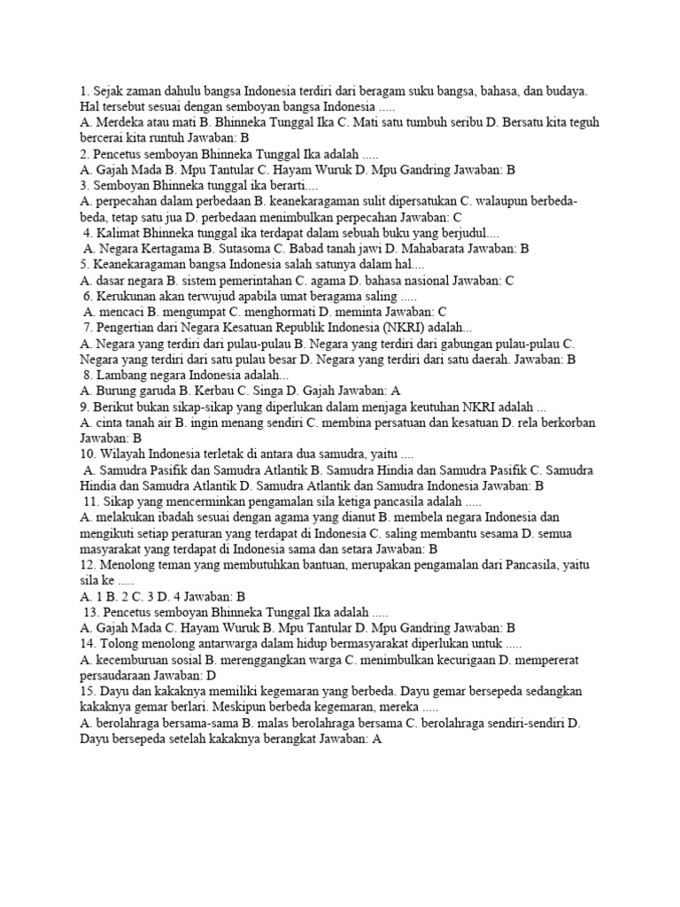- Contoh (PPKn): Manakah yang merupakan ciri sahabat sejati?